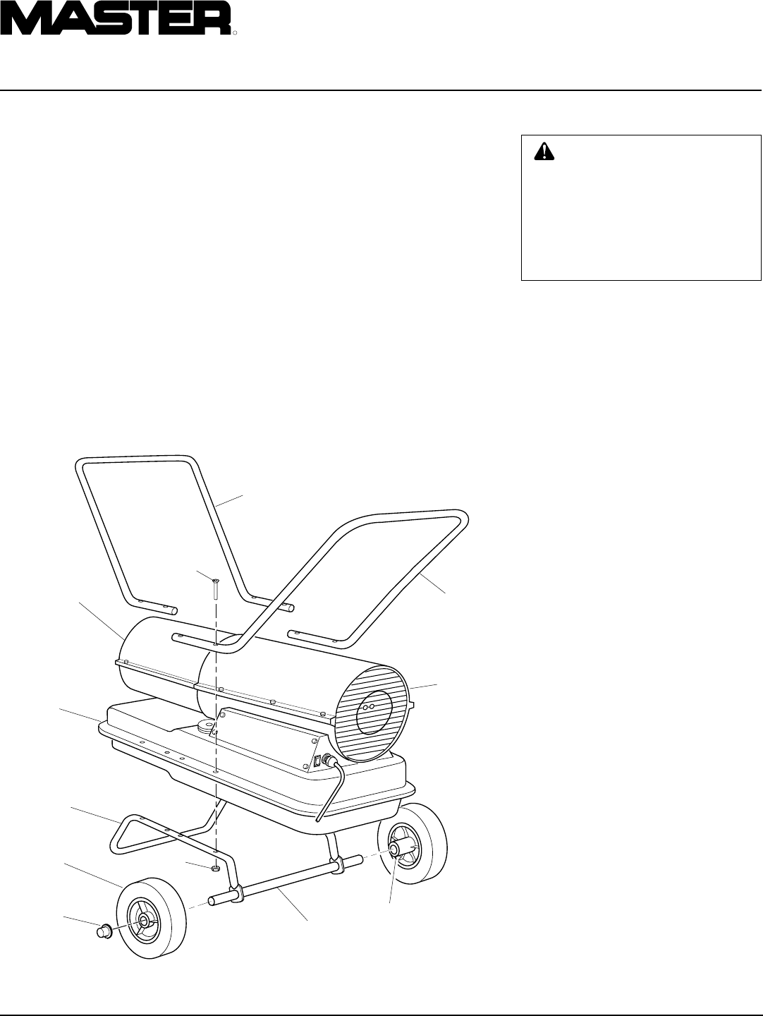 3. Place heater on wheel support frame.